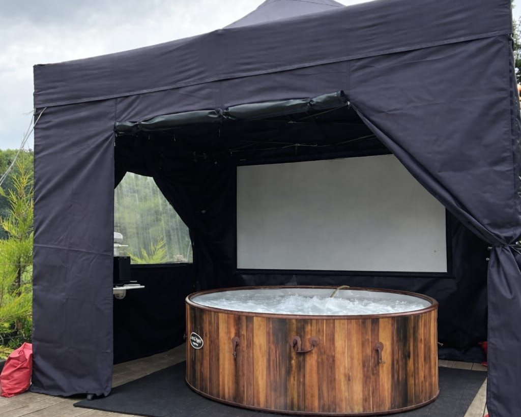 We can setup on grass or hard surfaces provided its flat and level. Please ensure you have enough space (3m x 3m) to fit in a gazebo. We would require an electrical plug point and a water point with a hose pipe. Please ensure the area where the hot tub will be positioned is clean and access cleared.